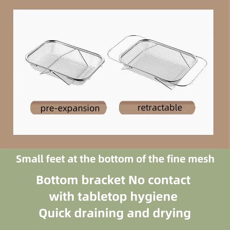 🥦🍎Multifunktionell och platsbesparande:Detta mångsidiga dräneringsställ fungerar både som diskställ, grönsakstvätt och fruktkorg. Dess hopfällbara design gör det lätt att förvara, vilket sparar värdefullt bänkutrymme när det inte används.